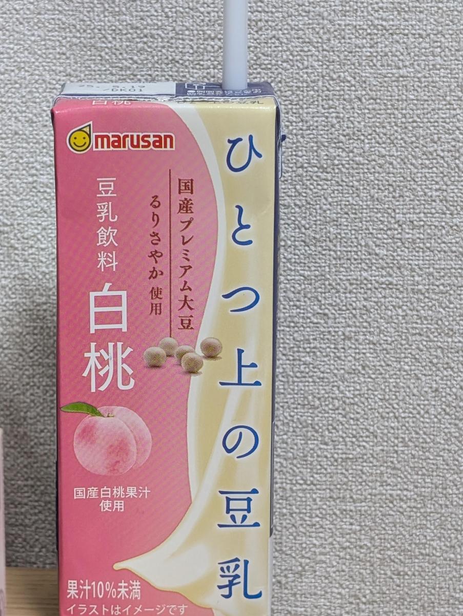 豆乳の味がするけど、白桃のほうがもっとしっかりします。桃味が甘くておいしいです。まろやかで、上品な味がします。コッペパンと合いそうです。
