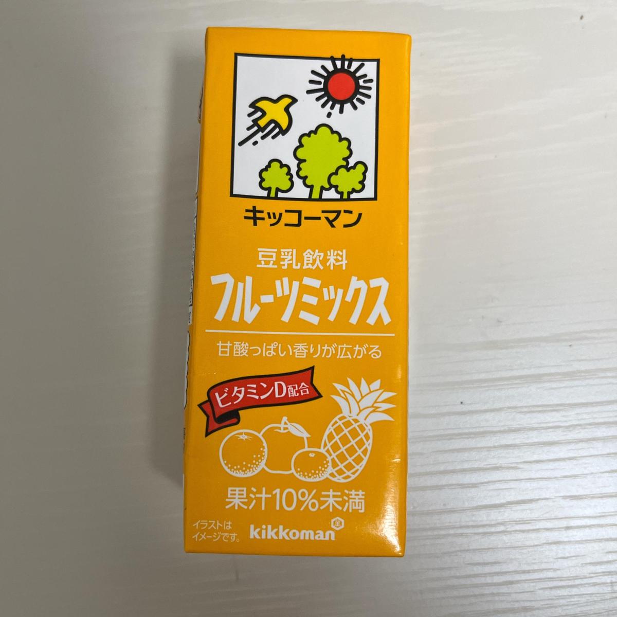 豆乳が嫌いな人も美味しく飲めるフルーツ味です。ビタミンDが配合されていてりんご、パイナップル、オレンジ、みかんの果汁が入っていてフルーツジュースのように甘くて飲みやすくて良いです。酸味もあるので爽やかでリフレッシュ効果があります。