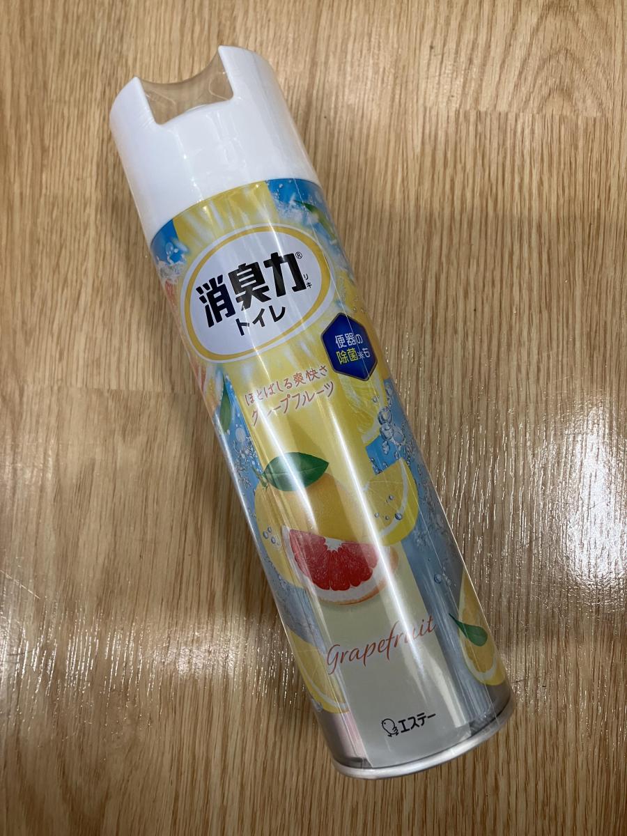 トイレの消臭スプレーもいつも同じものだと飽きるので、今回は季節感もあるグレープフルーツの香りを選びました。少し酸味のある爽やかなフルーティーな香りで、柑橘系の弾ける感じがトロピカルっぽい!夏っぽくて使う度に気分が上がります。