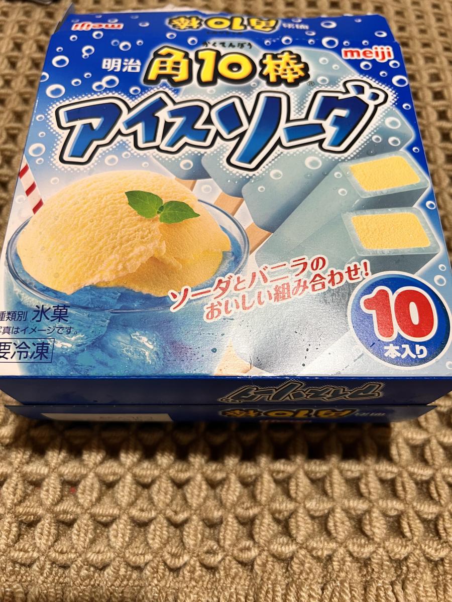 パッケージの角10棒アイスソーダという名前が分かりやすくて好きです。10本も入っていて、夏に定番のソーダ味。ソーダ味だけだと物足りないですが、中にバニラが入っていて、満足感もあり美味しいです。子どもは学校の後、私は風呂上がりによく食べています。家族で食べれる量なのも好きです。