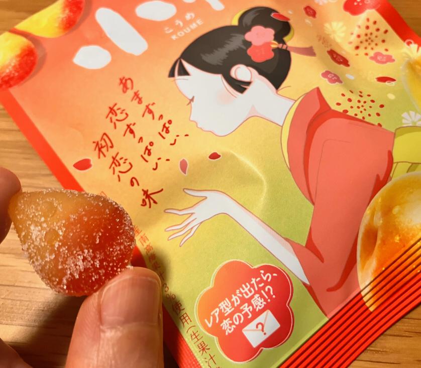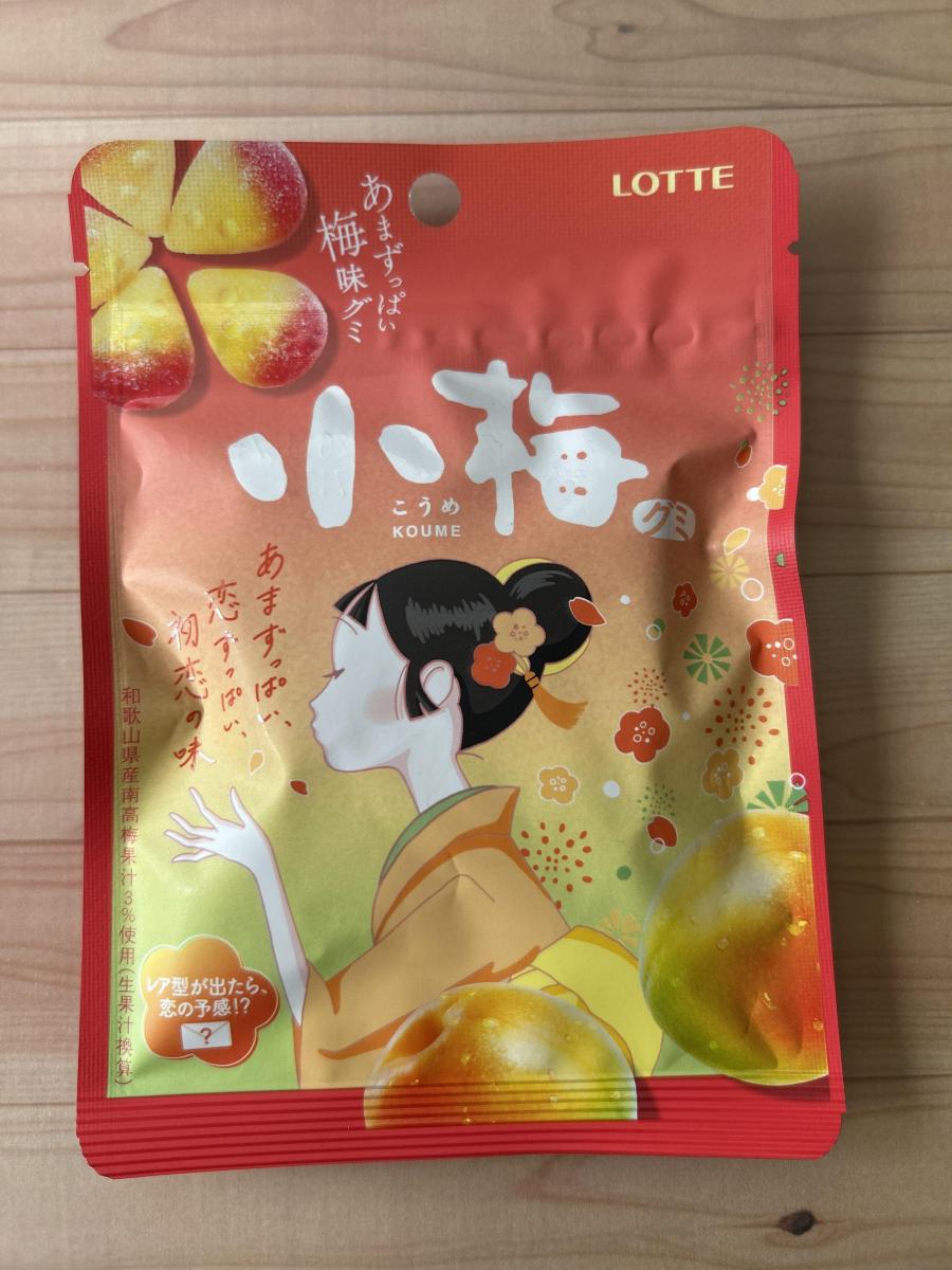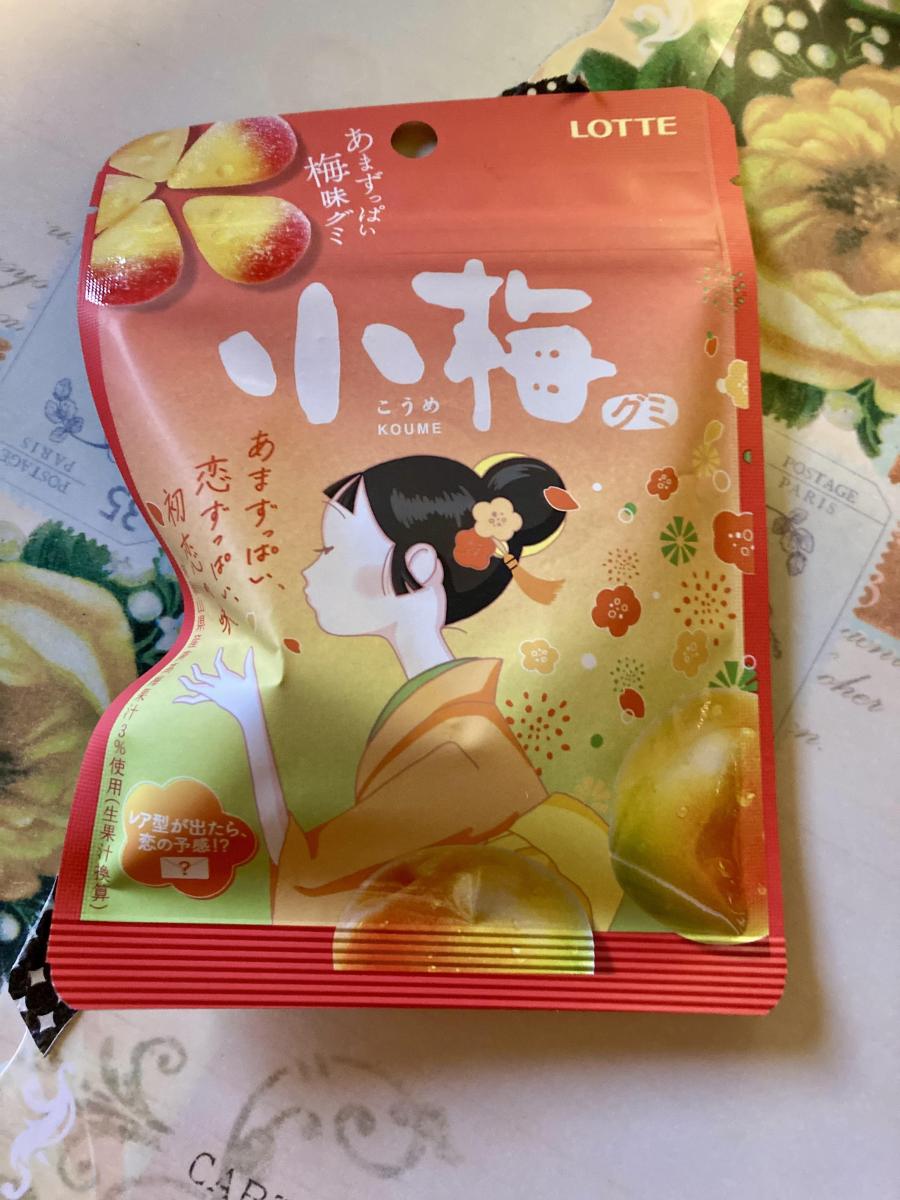 私の大好きな小梅飴のグミバージョンが発売されたということで買ってみました。味は、甘酸っぱい小梅の飴とよく似ていておいしいです。パッケージもかわいい。