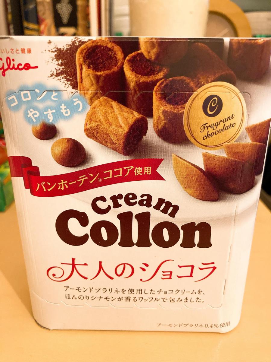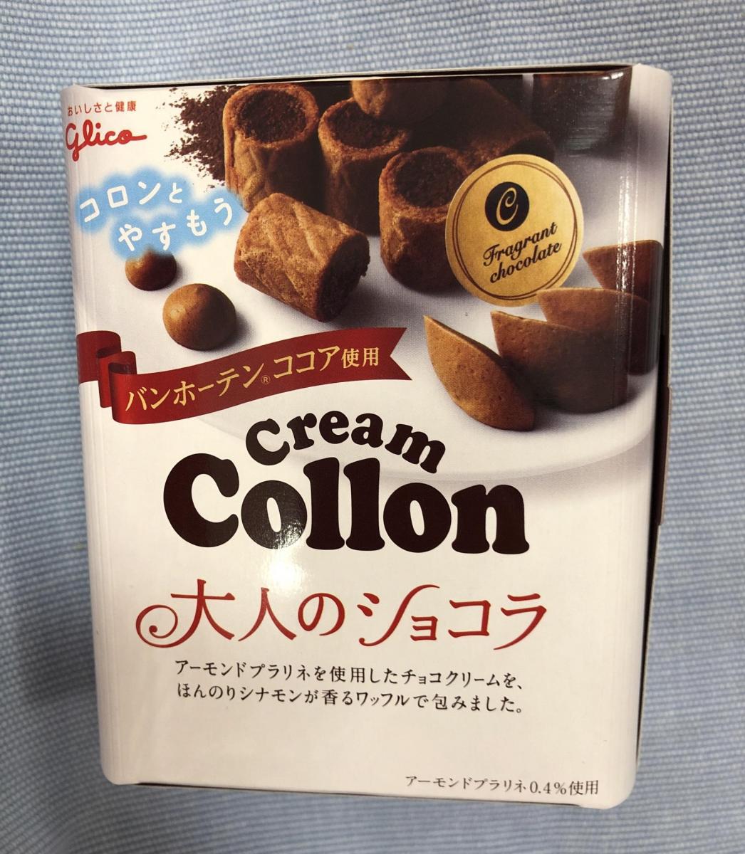 「クリーム コロン」は小さい頃から親しみ続けた愛着のある大好きなお菓子のひとつです。ただし悲しいかな味わうことをせずに大抵は一口でペロッと平らげてしまっていました。大人のショコラはアーモンドプラリネの香ばしいナッツと砂糖の焦げ味が特長とのことで外側のワッフルからは仄かにシナモンの香りがします。詳しくはわからない…けれども、”作り手のこだわり”のヒシヒシと伝わってくる子供向けにしておくにはもったいない味わい深い印象でした。