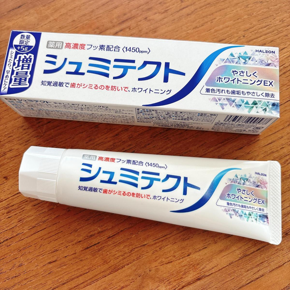 知覚過敏が気になるのでシュミテクトのシリーズを使っています。シュミテクトはいっぱいシリーズがあって、買うときに迷うのですが、ホワイトニングも気になっていてこれにしました。