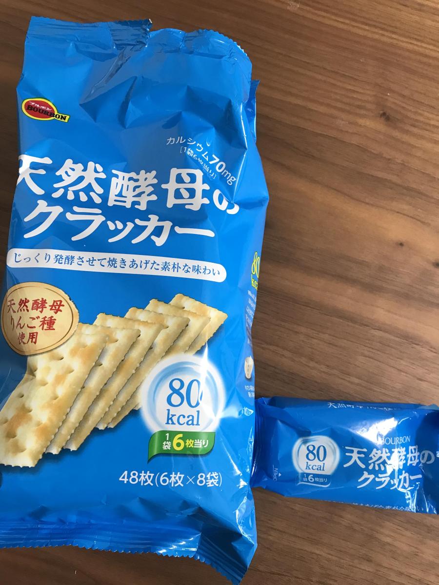 ブルボンのクラッカーってイメージがなかったんですが、あるんですね。天然酵母のクラッカー。塩味で素朴なところある意味新鮮でした。カルシウムもとれて小袋に6枚入ってます。小袋で80カロリーです。食パン約半分らしいですよ。