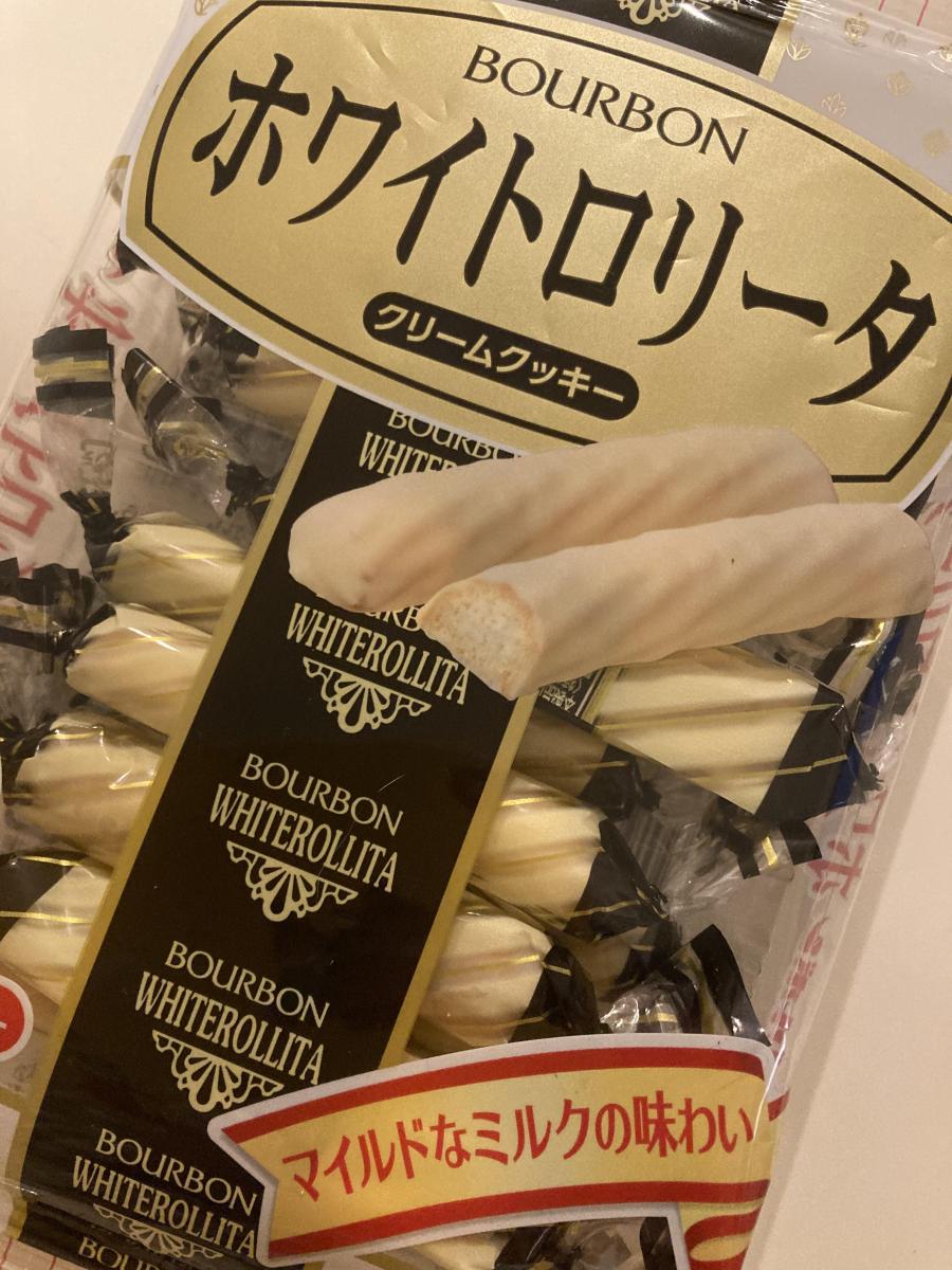 ブルボンのこのシリーズは昔からあるお菓子でレトロなパッケージが懐かしさもありつい手に取りたくなります。ホワイトロリータはスティック状のクッキーをミルククリームで包んでありどこか懐かしくて優しい味わいに癒されます。