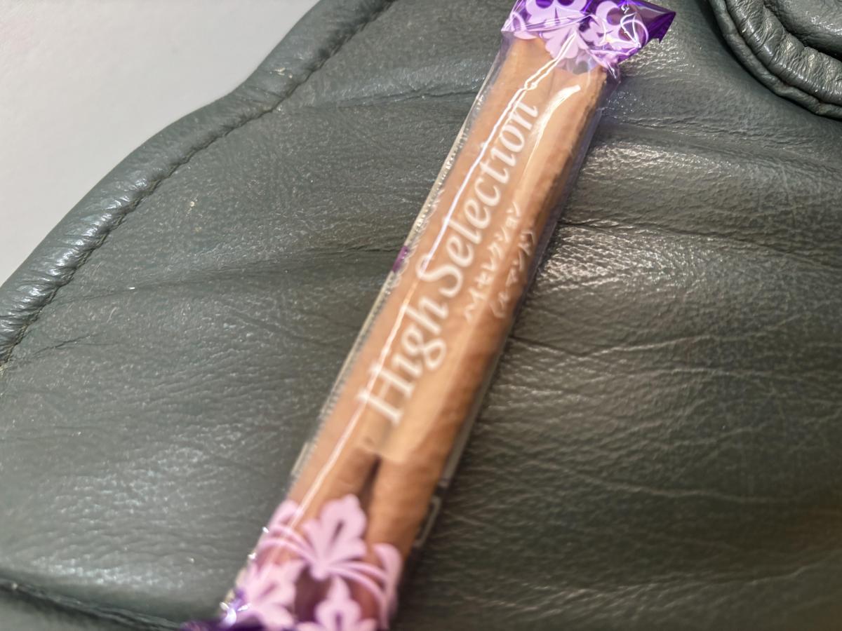 うす焼クレープ生地なので、サクサクで美味しいです。ボロボロとこぼれてしまうので気をつけながら食べないといけないお菓子です。うす焼クレープをスティック状にしてあるので、大人になってもこぼしながら食べることに…(笑)
