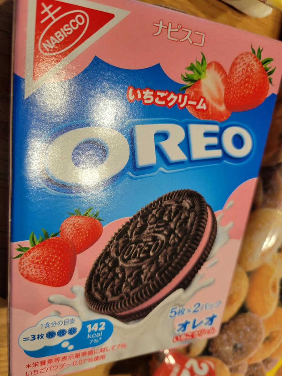 オレオは昔からの定番で大好きですが、いちごのクリームは初めて見ました!クリームがピンク色で可愛くてテンション上がります。食べるとほんのり甘酸っぱさの酸味が効いていておいしいです。もう少しいちごの果汁感を感じられると個人的には嬉しいです。定番と違う味でこれはこれで良かったです。