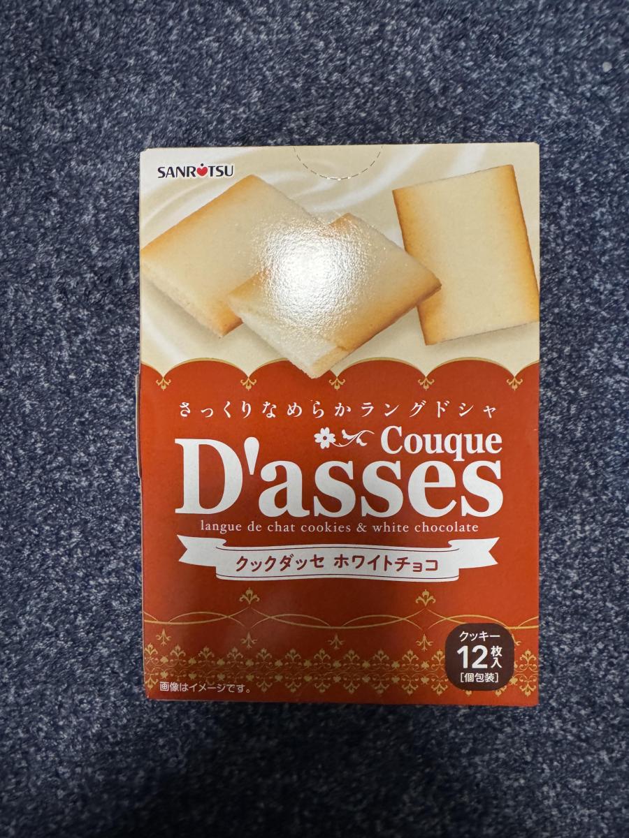 とても安かったので購入してみました。ラングドシャとホワイトチョコ、、似たようなお菓子を食べたことがあるような、そして想像通りの味、、なのですが、この組み合わせが好みなので、普通に美味しかったです。コスパいいので、また見かけたら買おうかな。