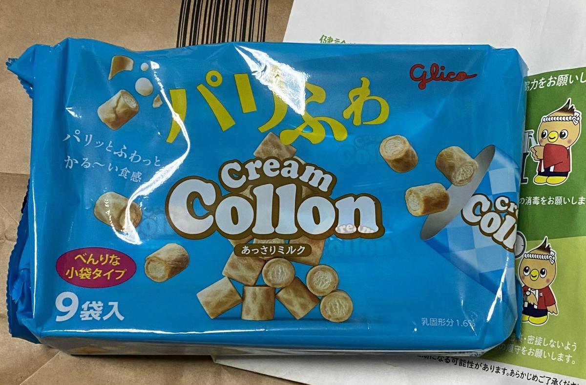 パリパリとした軽い食感のうすいワッフル生地とフワフワの軽いクリームが美味しいコロン!サクサクフワフワの甘いお菓子