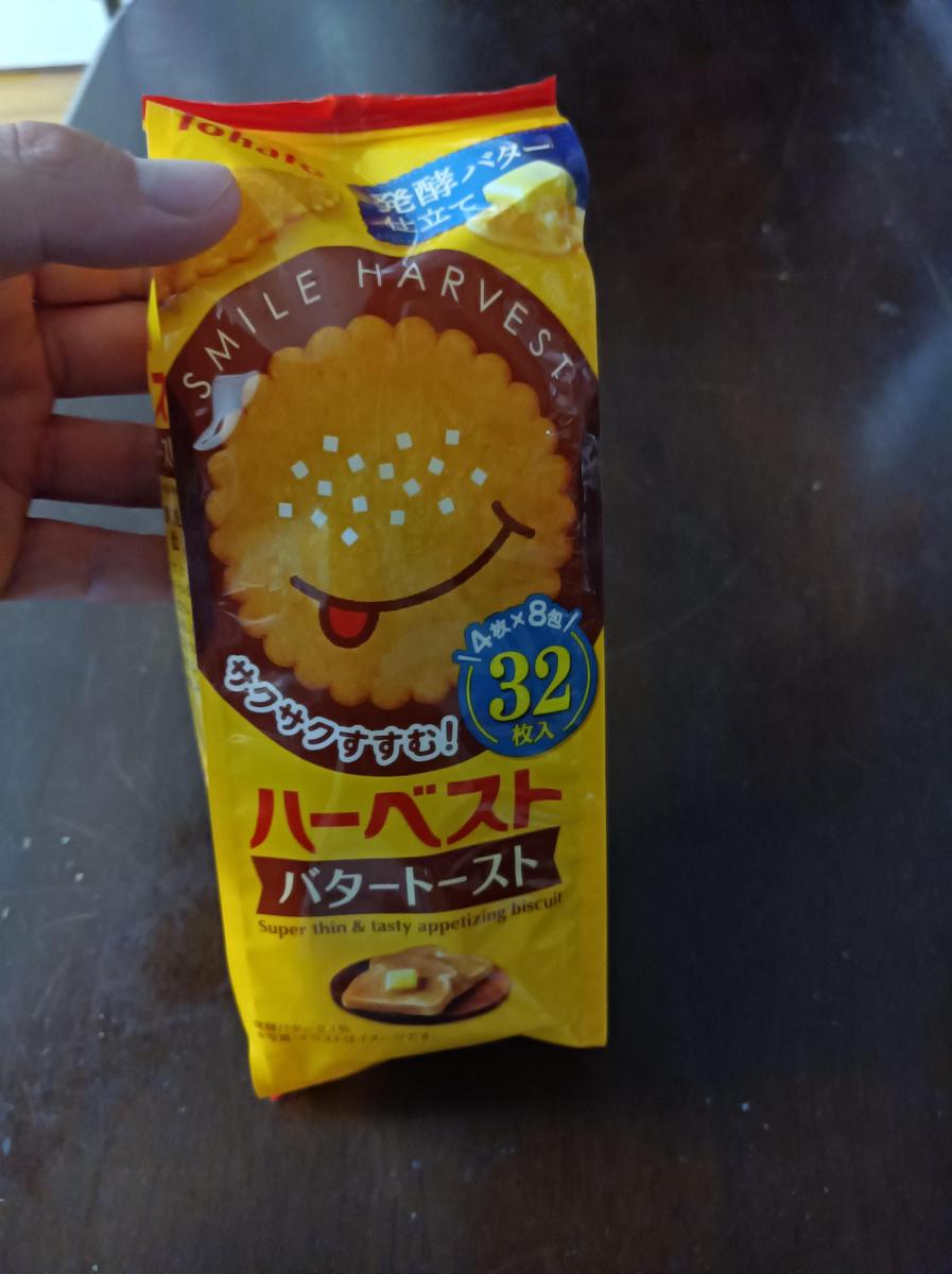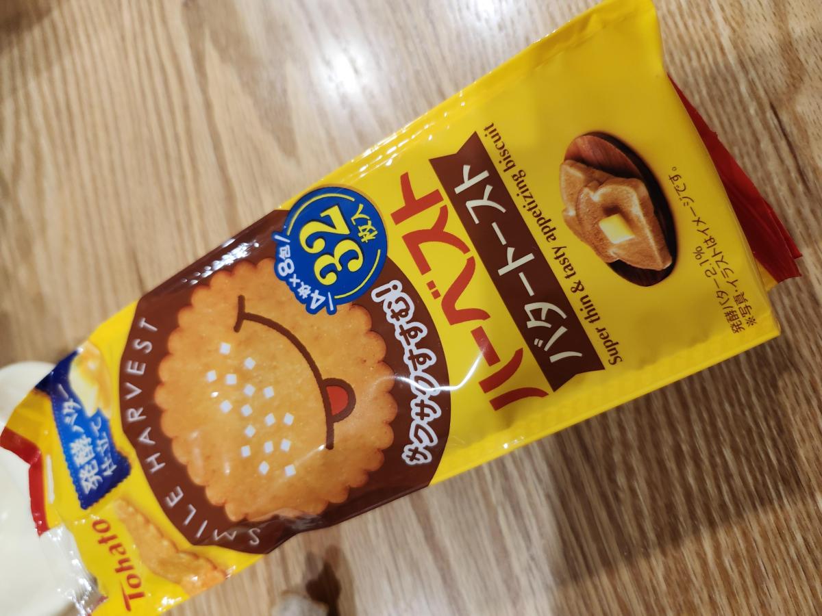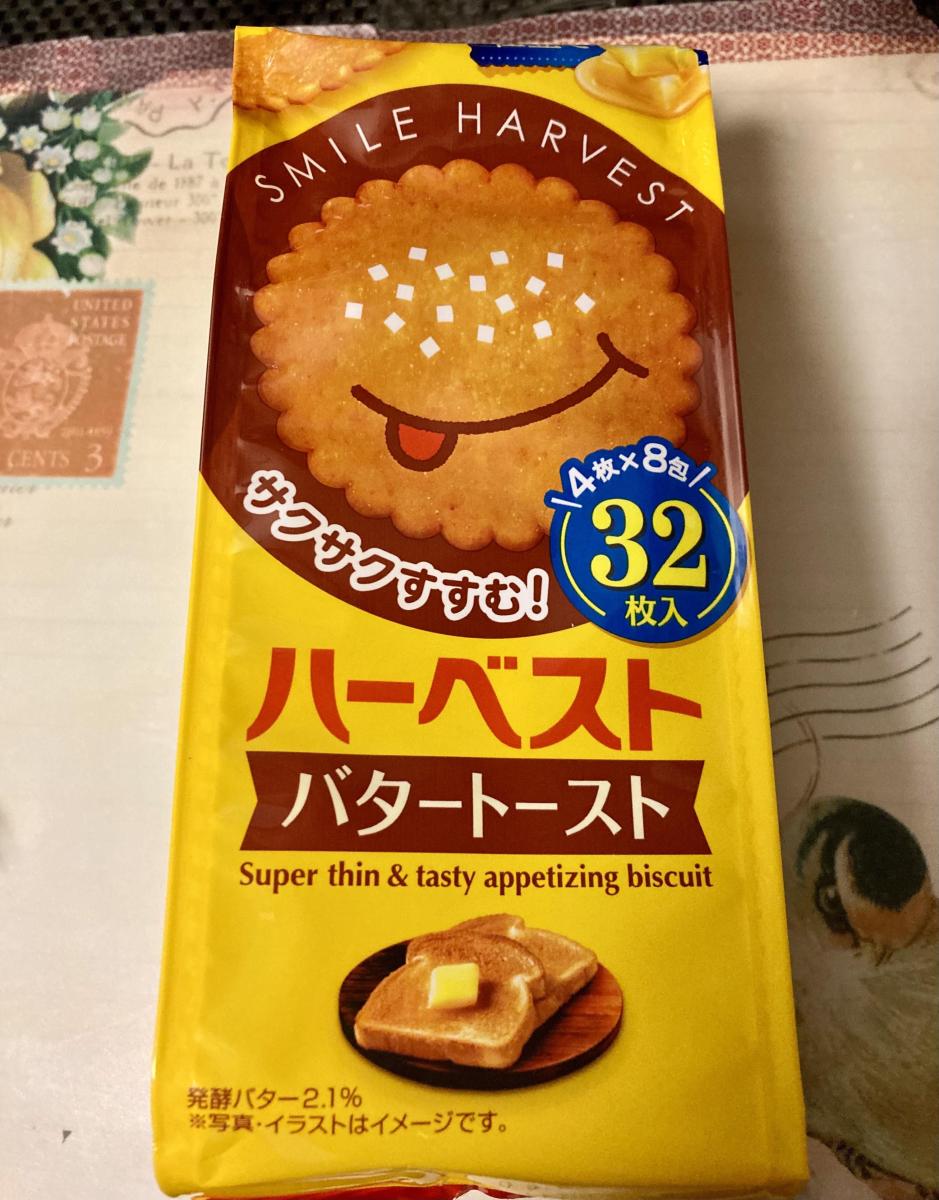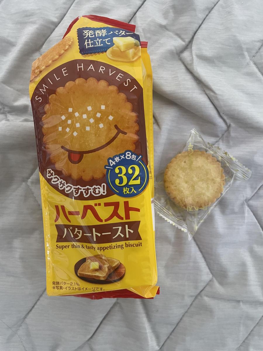 薄さがいい感じのクッキーハーベスト。今回100円以下で安売りしていたので思わず購入。バター味が美味しそうと思いこちらの味を選びました。まず袋を開けた瞬間バターのいい香りが広がりテンションあがりました。口に含んでもバター感や甘さがあり枚数も多いのでお得感もありとても良かったです。安いのに小袋がたくさん入っているところもいいなあと思いました。