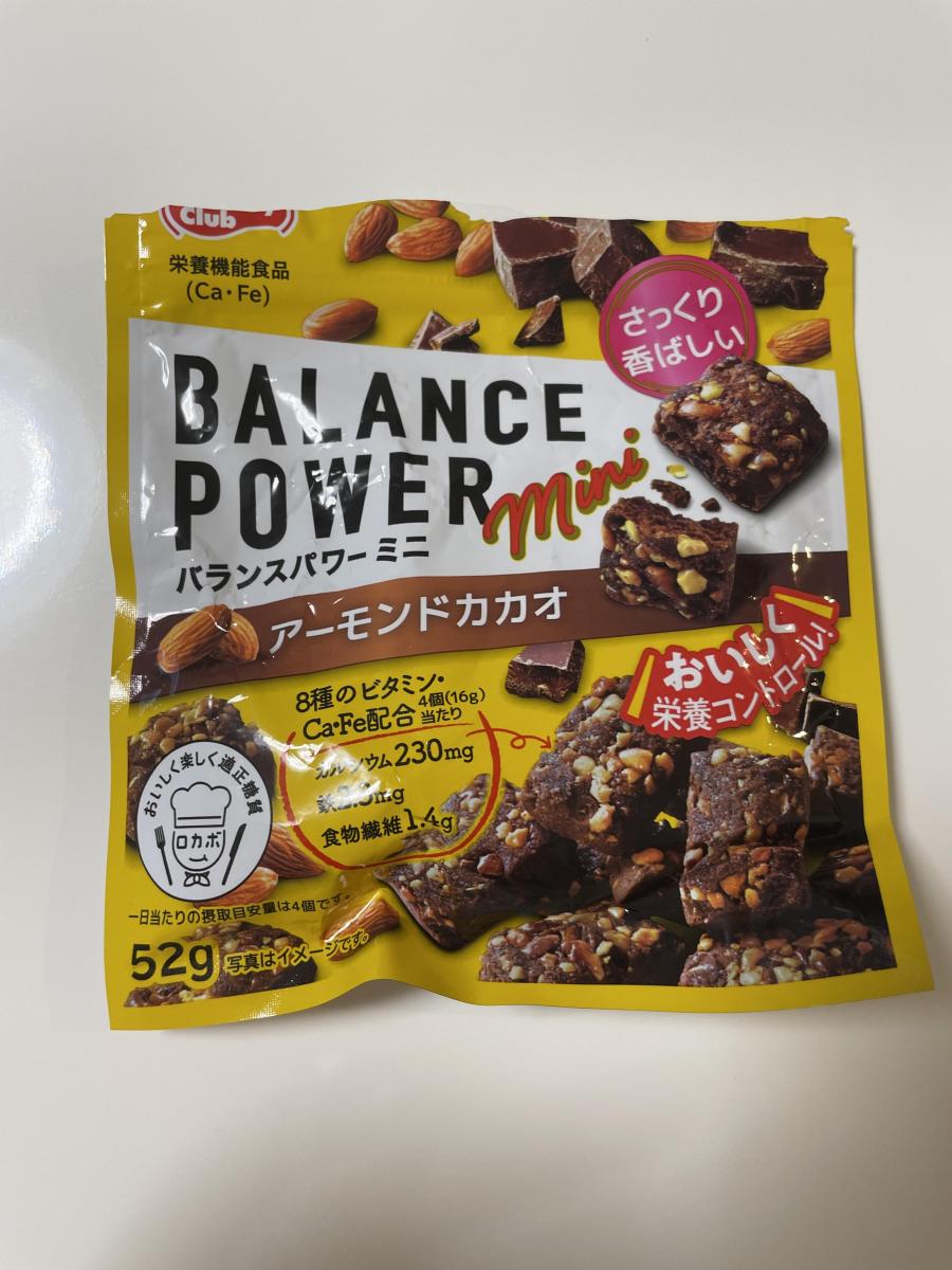 普通のバランスパワーとは違い、ミニで一つ当たりの大きさが小さい分に個数が多めに感じられ、一つひとつ食べても長く味わえる良さを感じられ、チョコのコク深さにアーモンドのカリカリとなる軽やかな食感をゆったりと味わえる便利さを感じました!