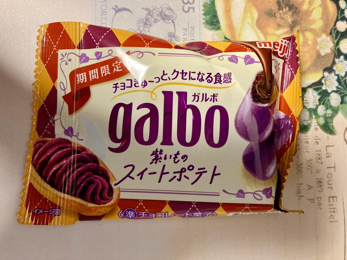 コンビニ限定商品として発売された、明治さんの大人気チョコレート菓子・ガルボの期間限定新商品「ほっくり紫いものスイートポテト」の紹介です。