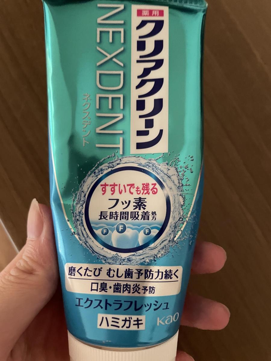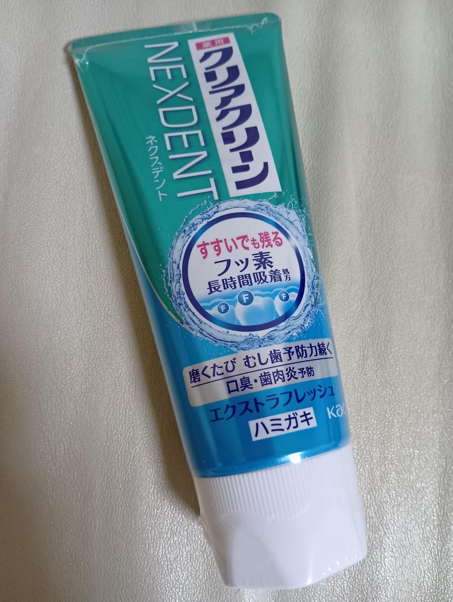 クリアクリーンネクスデントにはいろんなフレーバーがありその都度違ったものを試しています。このエクストラフレッシュはスカッとする爽快感が磨いた後に残ります。男性好みのフレーバーだと思いました。効果としてはフッ素が虫歯を予防してくれるようです。