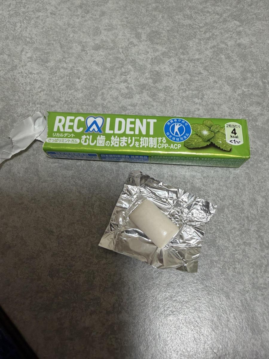 一番のポイントは、味が長持ちすること。他のガムはかみ続けると硬くなり味がなくなるが、リカルデントは味とミントがずっと続き、さすが虫歯予防をうたっているだけあってその効果を感じる。一口目は硬い感じとミントが強く感じるが、すぐに口の中で馴染む。