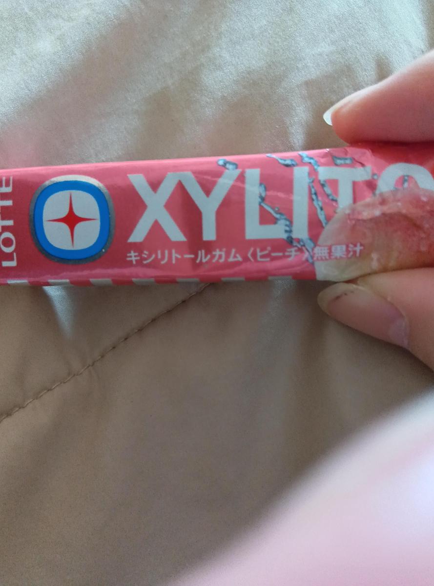 ピーチの香りで、淡いピンク色をしています。スーッとして甘さがあるのが爽やかです。歯のためにキシリトール入りのガムを選んでいます。小さな形やガムのかたさが良いので、口の中に入れていてもくどい感じがしないです。