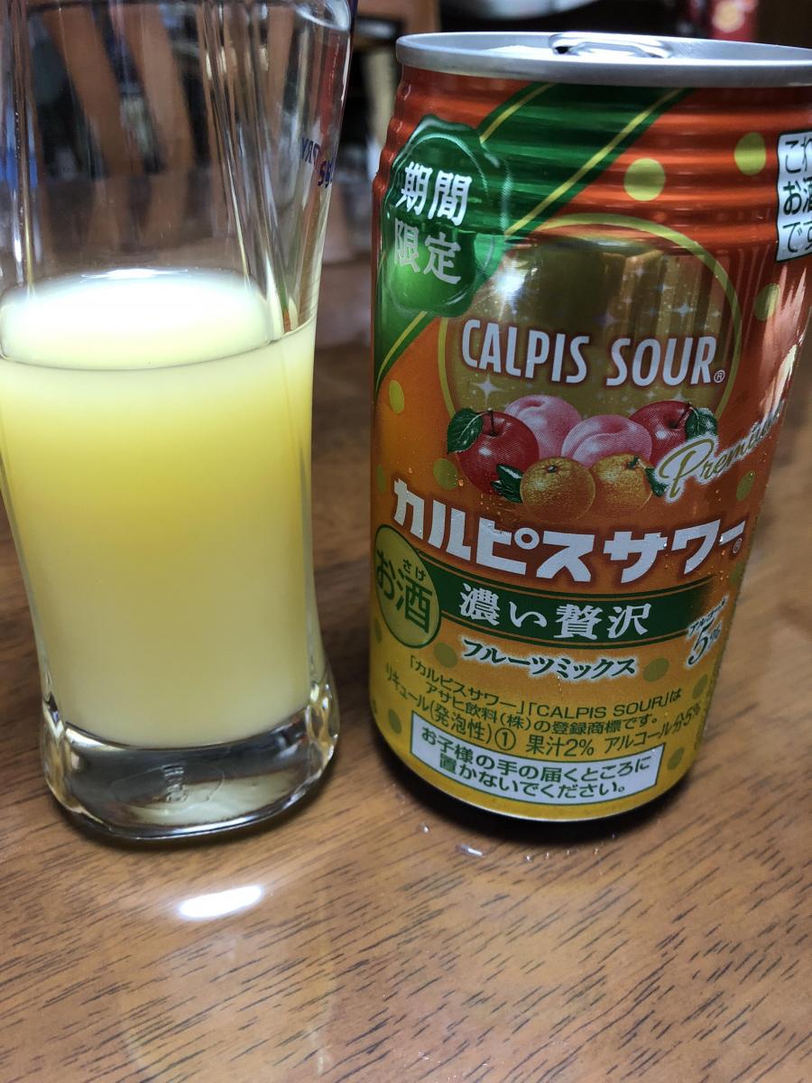 フルーツミックスということですが、あまり酸味は感じず甘さの方が強く感じます。ただカルピスサワーの味わいが良く濃いミックスジュースのような味で美味しかったです。