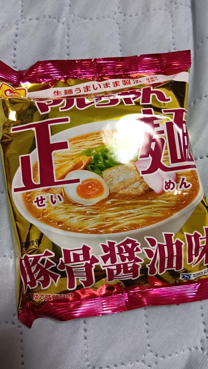 ユニークな生麺うまいまま製法のマルちゃん正麺のひとつです。生麺のようなツルっとした喉越しがあり、豚骨がほどよく効いた醤油ベースのスープと相性よいです。