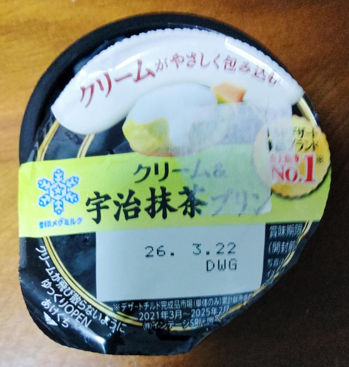 なめらかかな抹茶のほろ苦感のある抹茶プリンに生クリームが上にとろっとかかったプリンです。クリームの甘さと抹茶のほろ苦さが相性よくリッチな味わいです。スーパーでは100円前後なのでコスパも良いプリンだと思います。