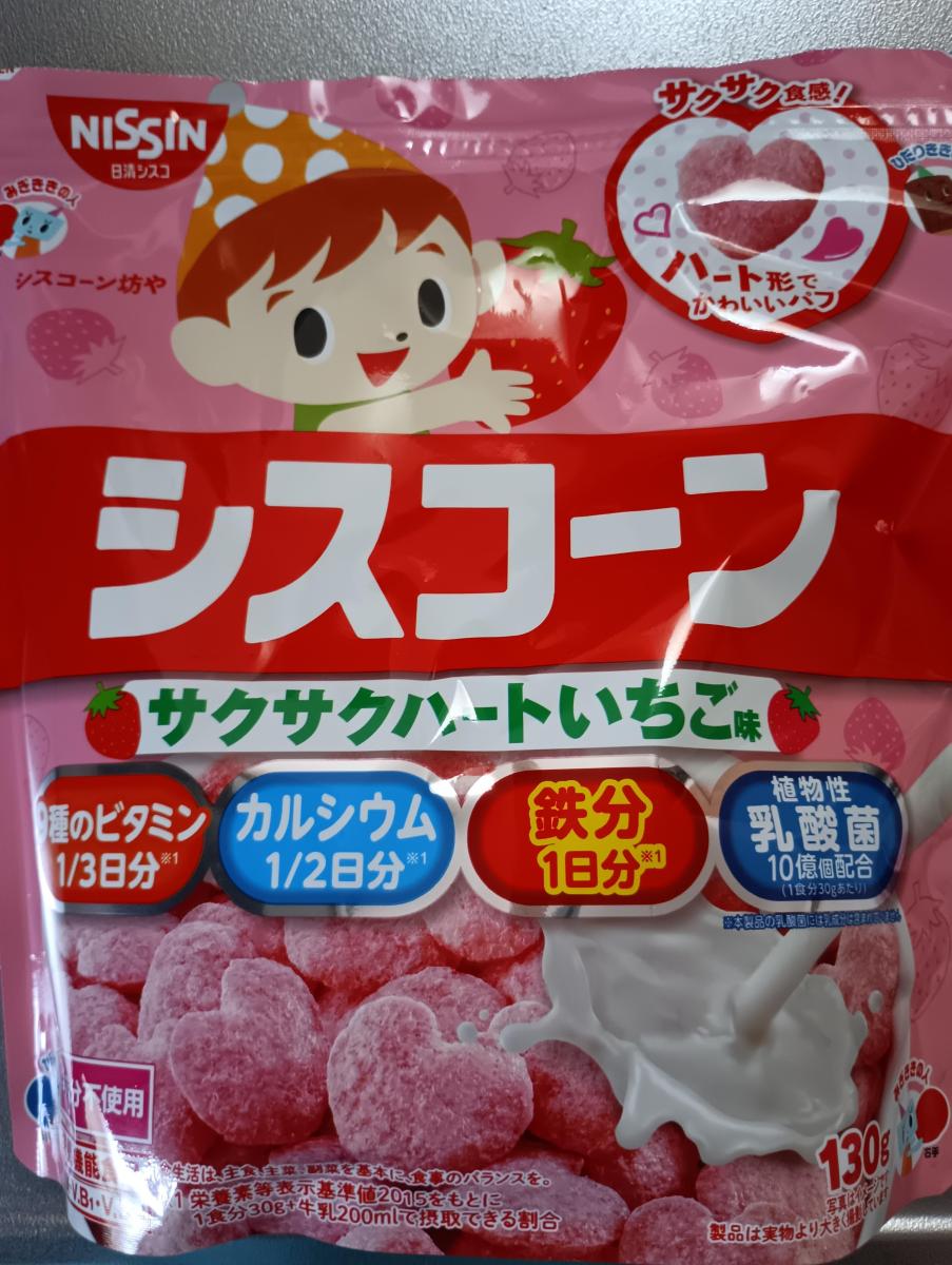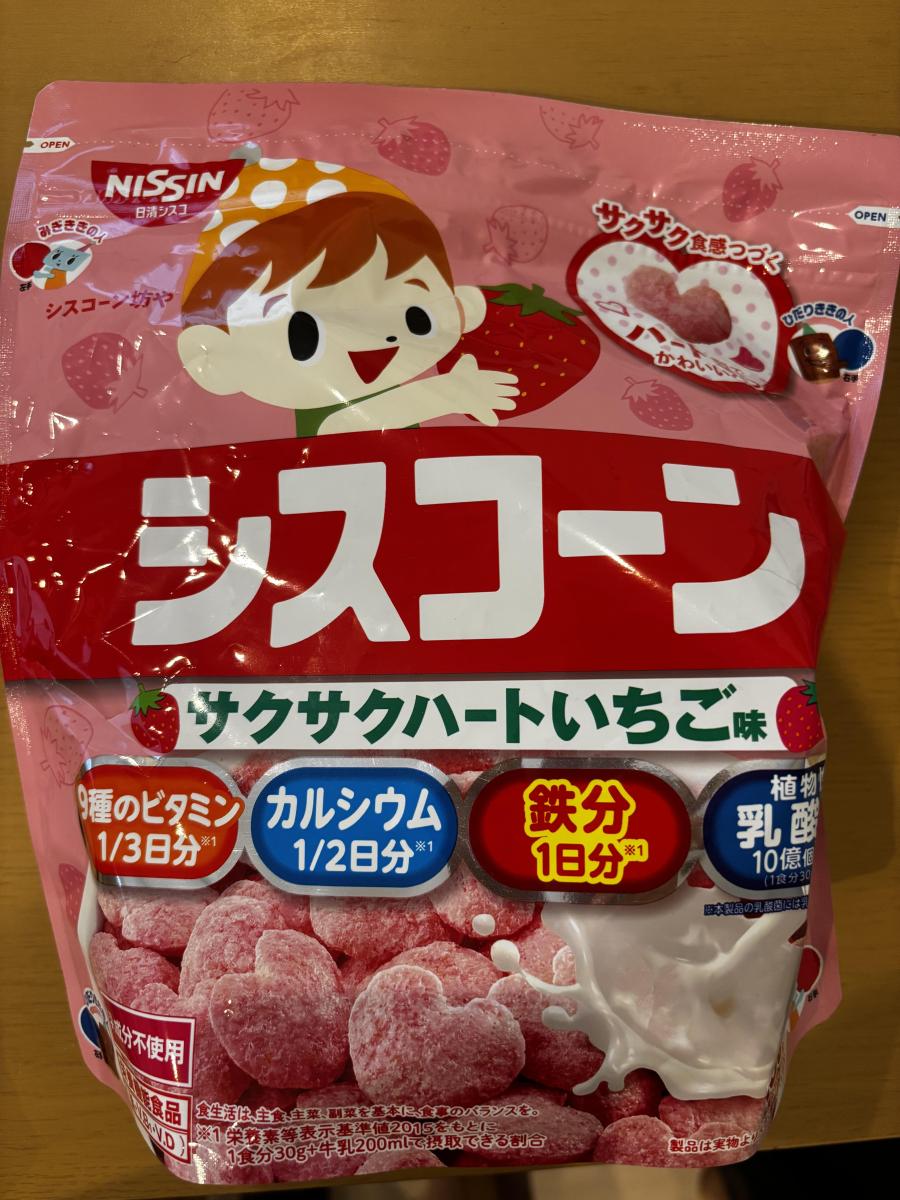 スーパーでシスコーンシリーズが安くなっていたので購入してみました。シスコーンサクサクいちご味は見かけも可愛くて9種のビタミン、カルシウム、鉄分、乳酸菌が入っており手軽に栄養とれてよかったです。