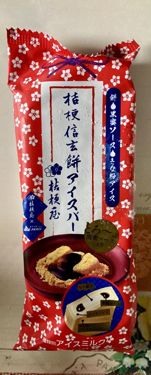 桔梗信玄餅のパッケージに惹かれて気になり購入してみました。きなこアイスキャンディーは甘く濃厚なきなこ風味でありながら、シャリシャリとアイスキャンデーらしいすっきりした味わいでした。おもちはもっちり柔らか、量もたっぷりで、黒蜜ソースはとろっとなめらか、甘く香ばしい濃厚な黒蜜の味わいでとても美味しい味わいでした。