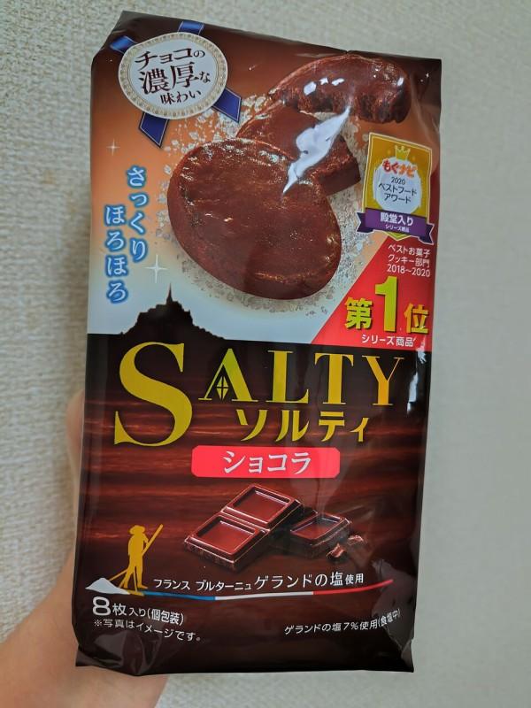 ソルティという名前のショコラ味のクッキー。甘い物としょっぱい物の組み合わせって美味しいよね…と思い購入。