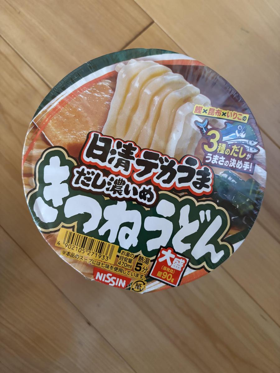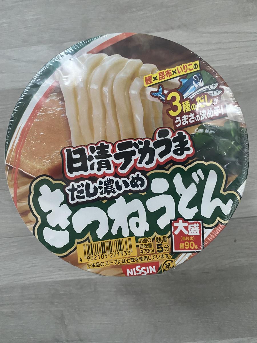 ドラッグストアで買い物した時に気になったので購入しました。日清と云えばどん兵衛、日清のうどんなら美味しいだろう、鰹、昆布、いりこ3種類のダシ使用、だし濃いめと書いてあったのでそこに惹かれて購入。麺はモチモチしててつるっとして食べ応えがあり3種類のダシも効いていて味が濃く美味しいです。油揚げは苦手なので家族にあげましたが個人的には小さい方がいいですね。量も多いので満足しました。どん兵衛のきつねうどんよりこっちの方がダシが濃いので好みです。