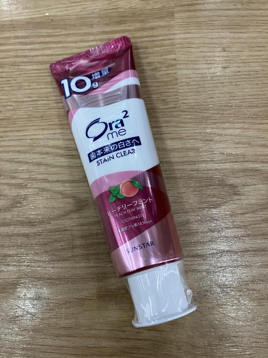 オーラツーのピンク!ピーチを購入しました。ほんのり甘めのフルーティーさを感じ、それでいて爽快感もある歯磨き粉でした。歯磨きあとはちゃんと歯もツルツルになりますし、口臭予防にもぴったりだなと思いました。ステイン効果で、使い続けていくと歯も白くなりそうなので期待して使用しています。