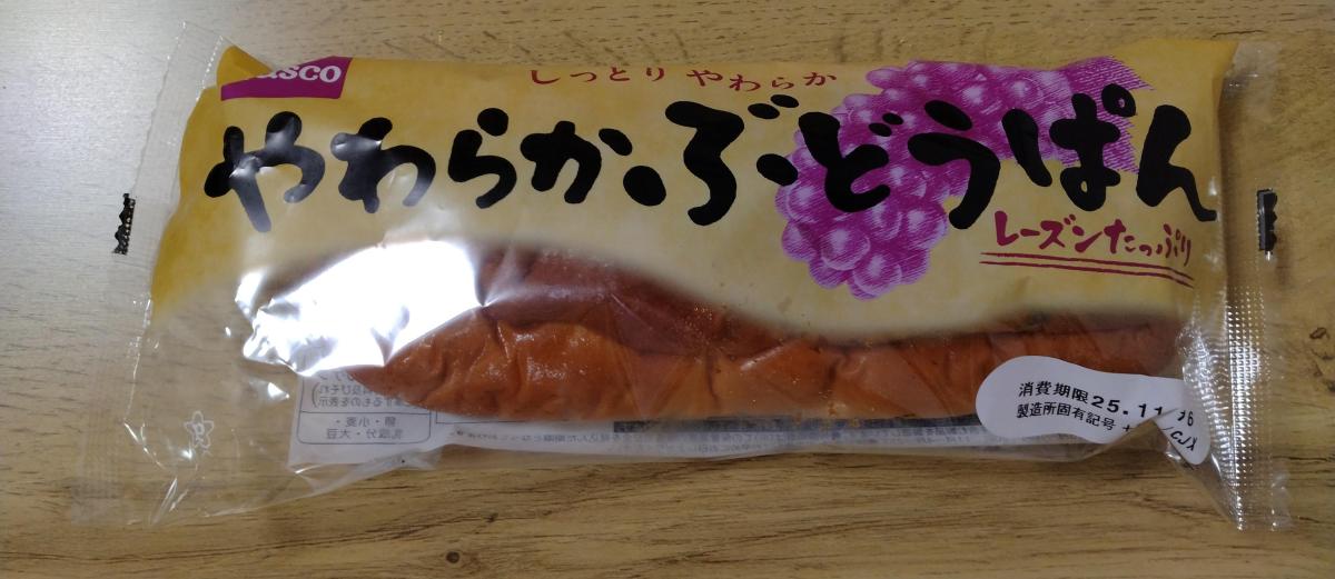 コッペパンなのにパサパサしてなくてしっとり柔らかくて干ぶどうがたっぷり入ってまして、干ぶどう好きにはたまらないです!