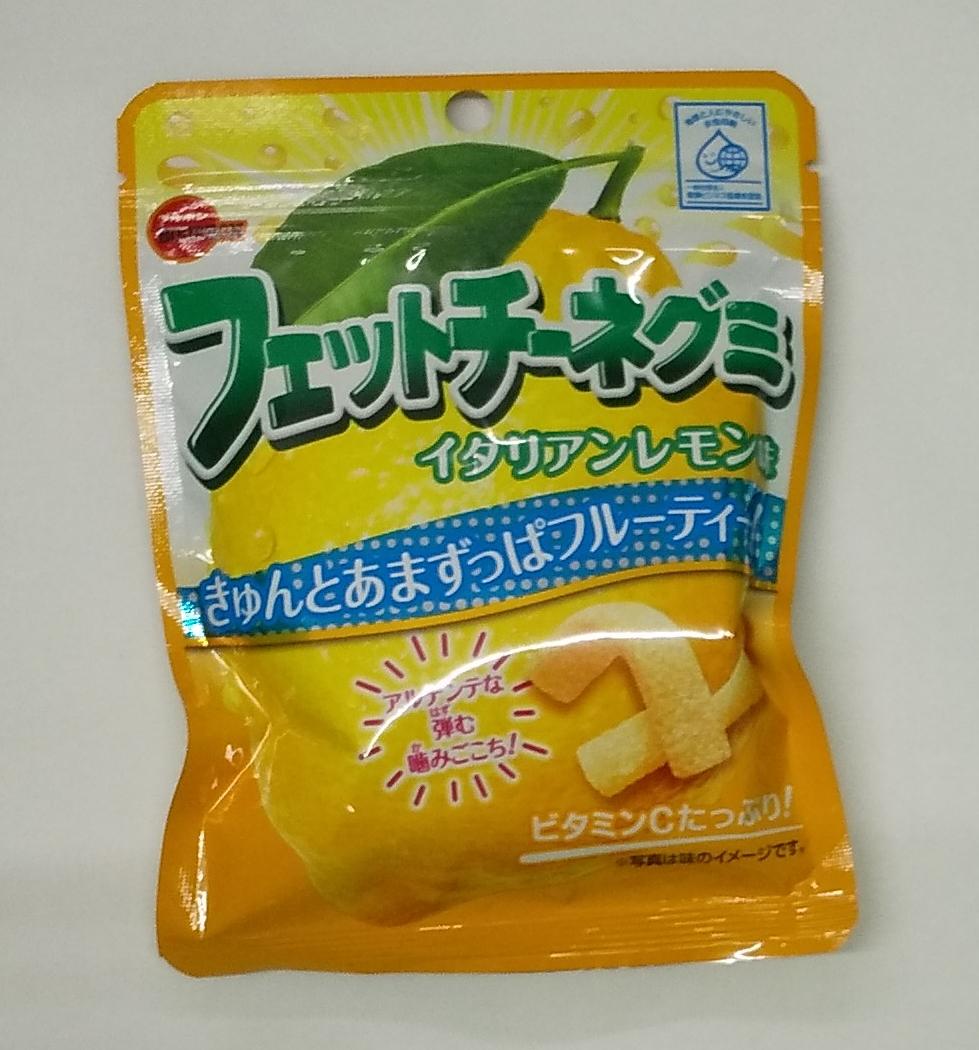 フェットチーネグミのレモン味を見つけたので買ってみました。しっかりと酸っぱいレモン味で、リフレッシュ感があっておいしいです。細長いグミは弾力があって、ほどよい噛み心地です。初めは酸っぱく、噛んでいると甘味が出てくるところがいいです。レモンの果汁感も少し感じられて、おいしかったです。