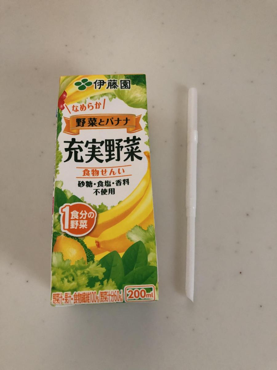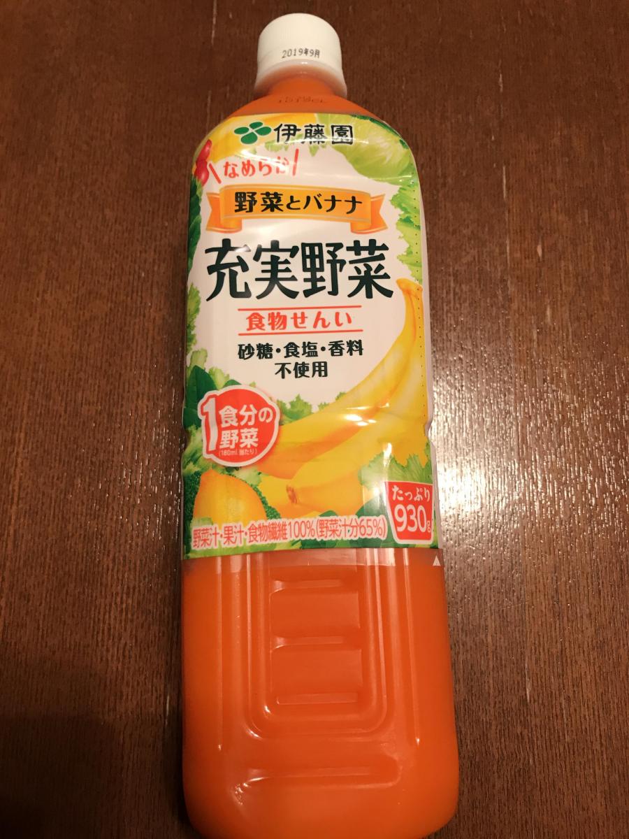 野菜ジュースですが、バナナも入っているため、とても飲みやすくなっています。少しどろっとしているので、水分補給には向いていませんが、朝食のお供などに良いかと思いました。