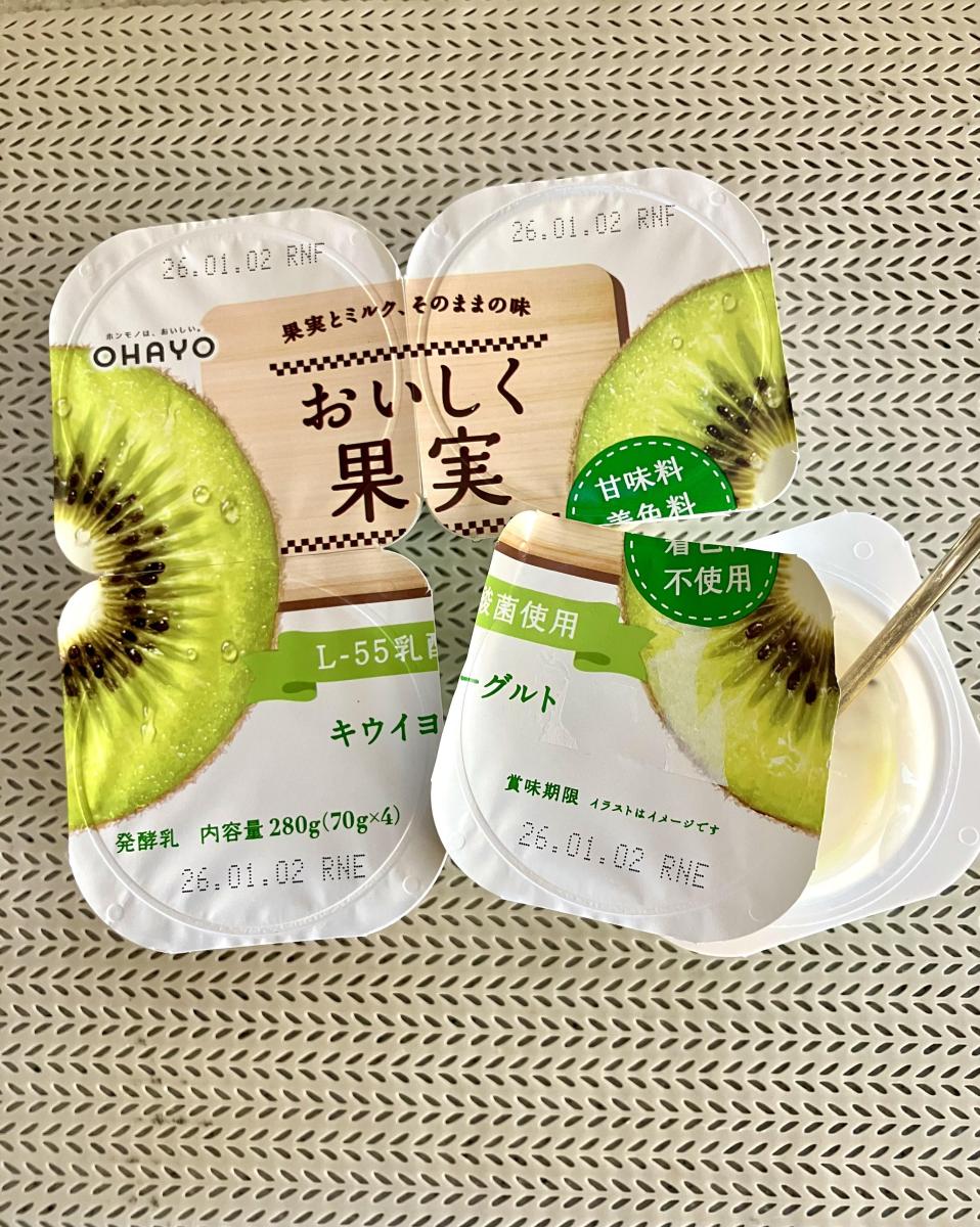 オハヨーのおいしく果実シリーズはどの味も好きですが他社でキウイの果実のヨーグルト商品があまりないため特にこちらを選ぶことが多いです。