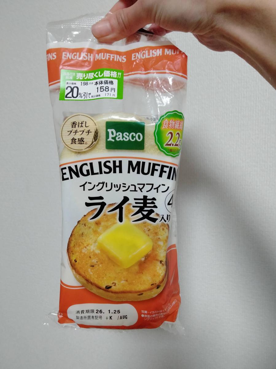 パスコのイングリッシュマフィン、大好きです。今回はライ麦入りを購入。
