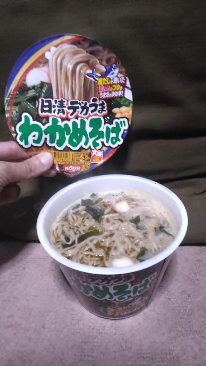 デカうまの商品名通りに麺と具材のわかめがたっぷり入ったボリューム感あるカップ蕎麦です。出汁がしっかり濃厚で麺とも相性よく、満足感とコスパ高いと思います。