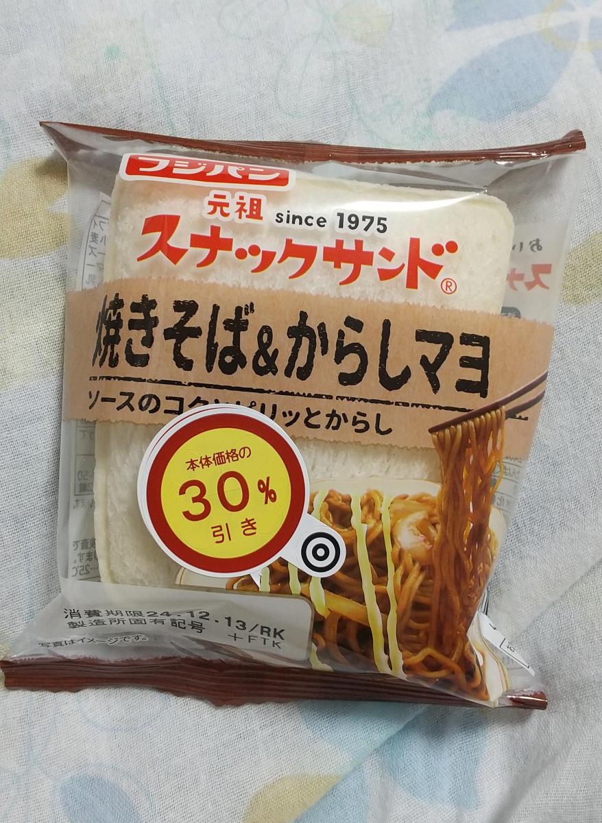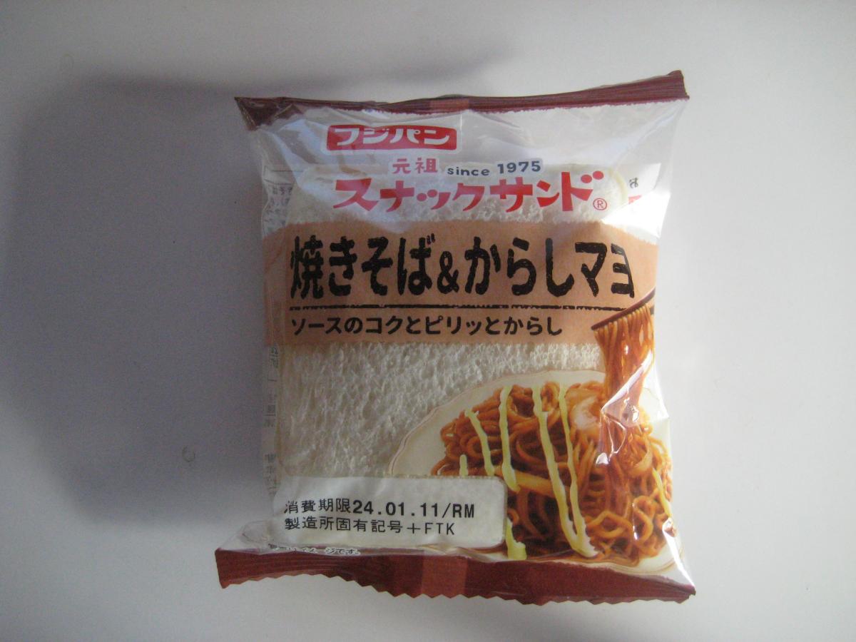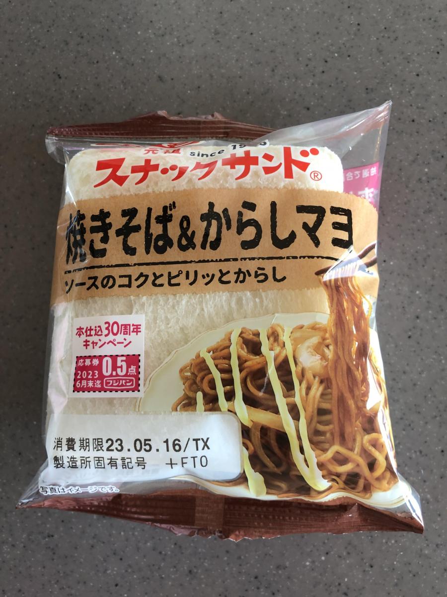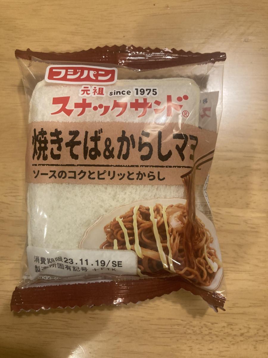もちもちの食感がたまらないフジパンのスナックサンド。フレーバーの種類が豊富で楽しいですね。こちらの焼きそば&からしマヨは味付けが濃厚でパン生地とよく合っていて美味しいです。