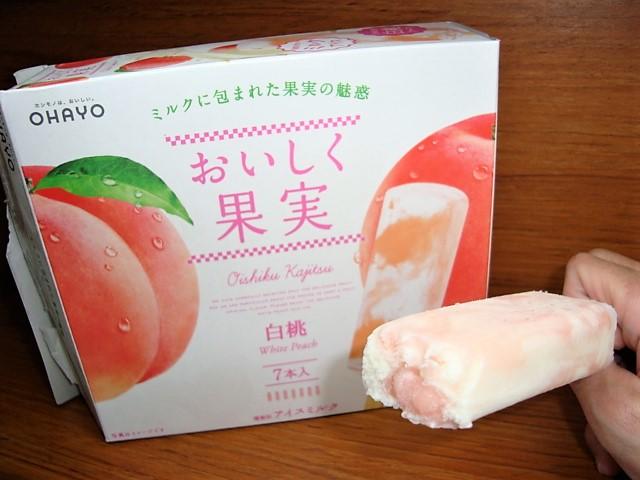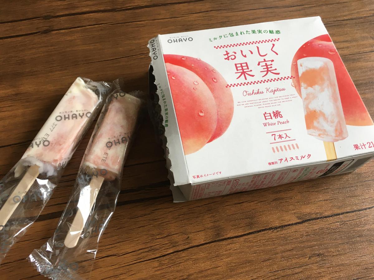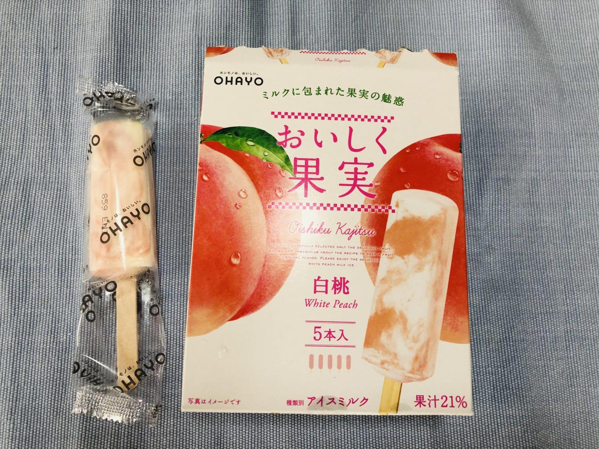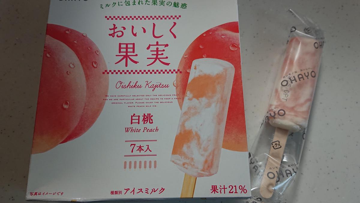 おいしく果実シリーズのいちごアイスが美味しかったので、白桃味も購入してみました。