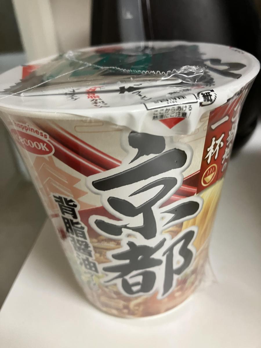 別添えのタレがそのまんま背脂という仕様でした。本場の京都のラーメンは知りませんが背脂醤油ラーメンとしてはカップ麺にしてはこってりしてるし甘さとコクのある感じでした。個人的にはご当地の一杯の中ではかなり良いと思いました。