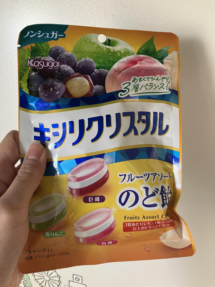 春日井のキシリクリスタル のど飴買ってみました。青リンゴ、巨峰、白桃の3種のフルーツアソート。のど飴ですが、どの味もジューシーなフルーツ味でとても美味しいです。飴は三層になっていてひんやりキシリトールをなめらかなキャンディでサンド、ひんやりキシリトールが爽やかでいいです。一粒あたりレモン一個分のビタミンCも嬉しいポイントですね。個包装になっていて持ち運びしやすくおすすめです。