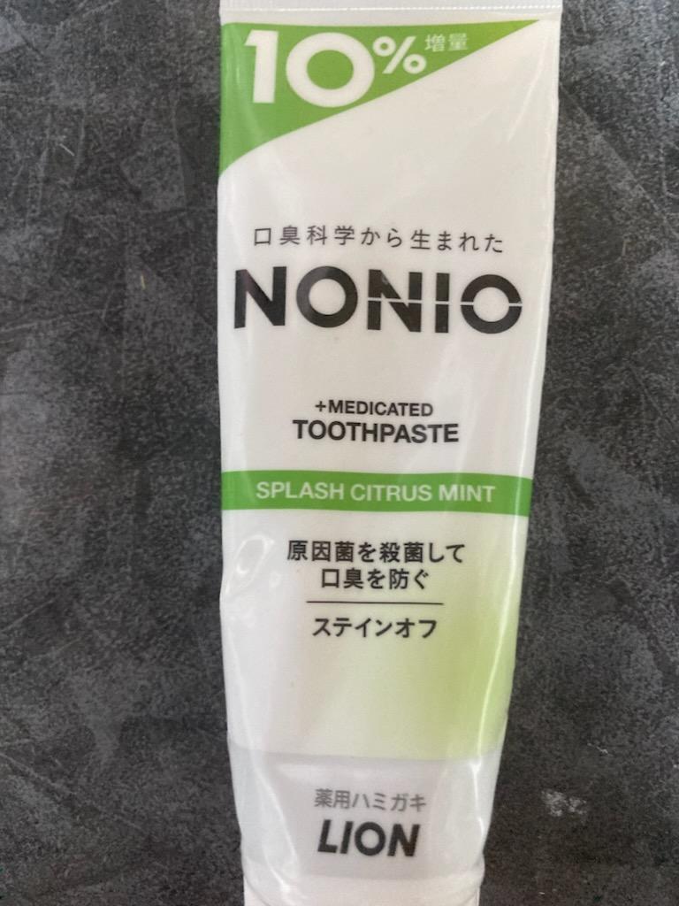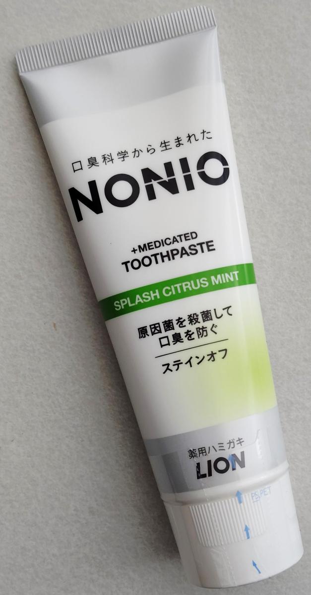NONIOのデンタルリンスを愛用しているので合せて歯磨き粉も購入。いろいろあるなかで買ったのがこの[スプラッシュシトラスミント]これは殺菌して口臭を防ぐ効果もありますがそれに加えて歯の表面の着色汚れを落とす「ステインオフ」の効果もあり歯にトリプルアクションしてくれるという優れものです。ミントというだけあって磨いている最中でもう爽快な気分になりますよ。