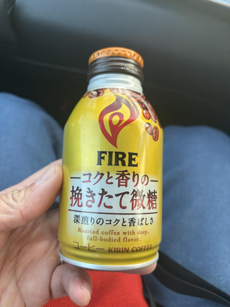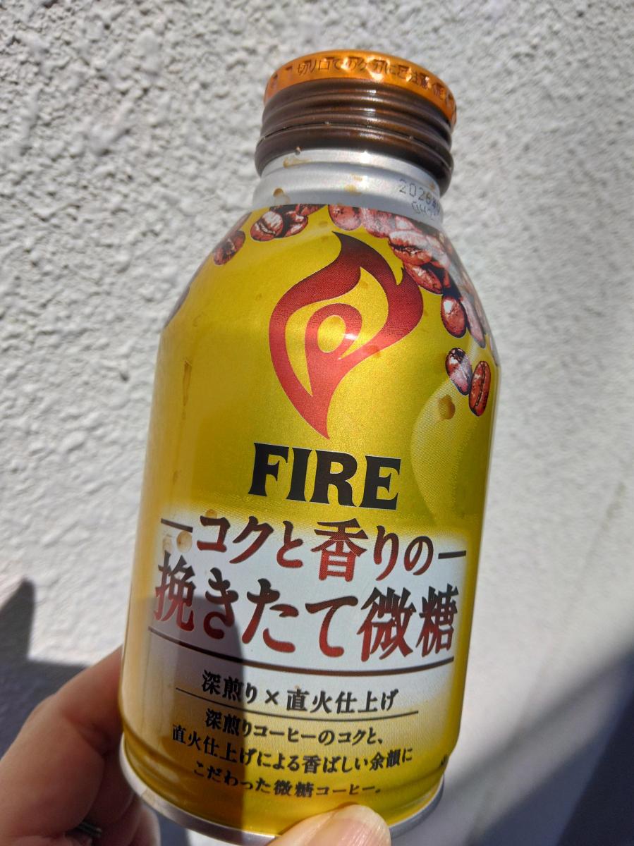 微糖のアンバイが絶妙で、後味にしっかりとコーヒーの苦みが残ります。ボトル缶なので風味が逃げないのと、倒しても