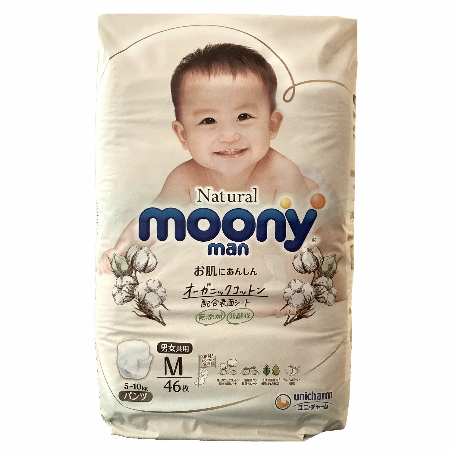 Sサイズを購入しましたが、他のメーカーのSだとパツパツで、うんちもまだまだゆるゆるなので後ろから漏れ漏れでしたが、ナチュラルムーニーマンは他社のより少し大きめなので長く使えて助かります!それに「ゆるうんちポケット」という3D設計になってるので、漏れません!毎日お風呂場で汚れた肌着をごしごし、、、が無くなりました!!