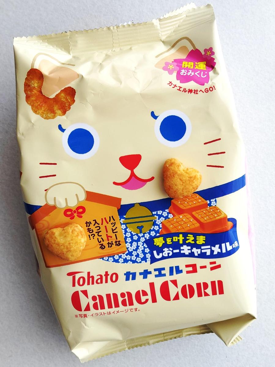 猫が福を招き入れてくれそうなカナエルコーン。小さなハート型コーンが大盤振る舞いでなんと13個も入っていました!!嬉しい!!赤いカナエルコーンと違ってピーナッツは入っていないけれど、発酵バターのまろやかなコクとほんのちょっと塩気があるから物足りなさは感じません。甘じょっぱい幸せに包まれるカナエルコーンは受験生だけでなく、みんなの願いを叶えてくれそう。