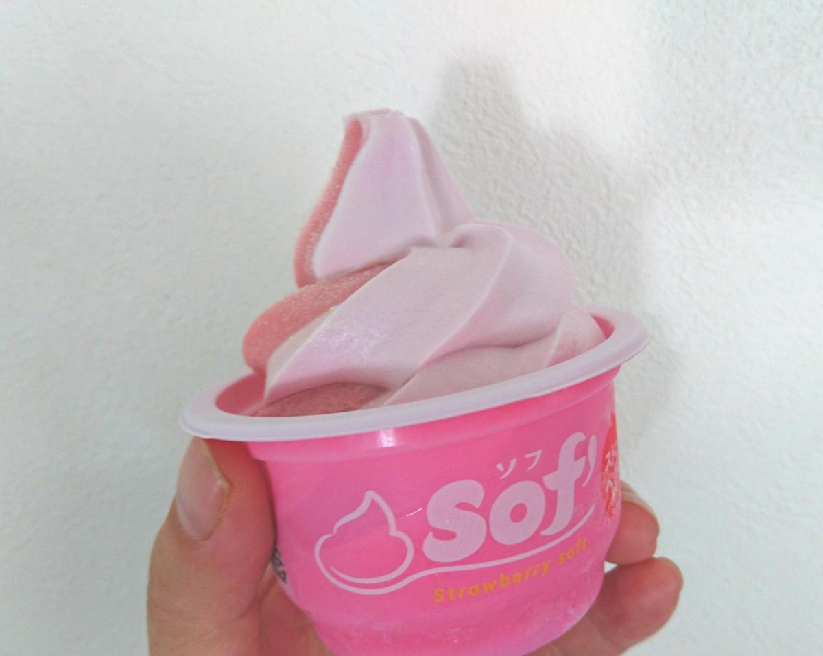 ソフトクリームとまでは言いにくいですが、なかなかの滑らかさでクリーミーな味わいでおいしいです。苺の味もしっかり感じることができます。