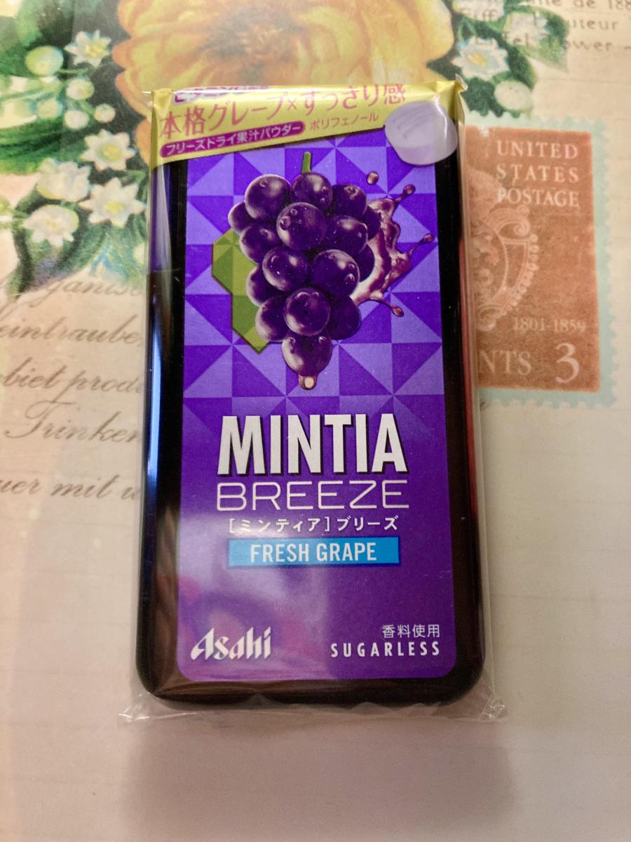 ミンティアブリーズ フレッシュグレープ味が気になり購入してみました。袋開けた瞬間からすごいぶどうの香りが漂い、バッグに入れてもすごく匂いがします。大粒のミントタブレットで、甘くて少し爽やかさのあるグレープ味で美味しかったです。ミント感は割と低めなので口臭予防というよりは気分転換用にいいかな。匂いがもう少し控えめな方がいいかな。