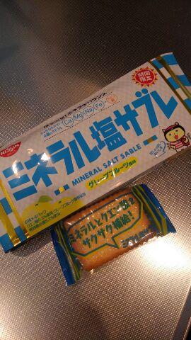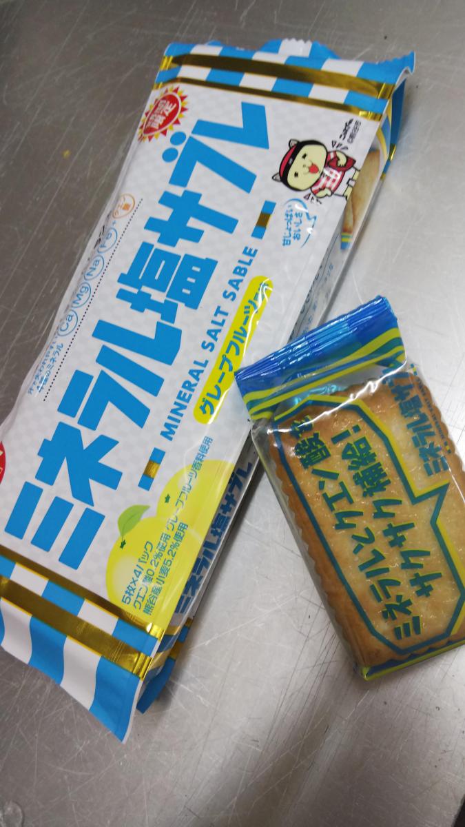 ミネラル塩サブレ!!Ca Mg Na Fe プラスにクエン酸まで入ってるそうで、これからの時期外での仕事や、スポーツなどで汗をよくかく時には持ってこいのおやつだと思いました。個包装になってて5枚入っているので、ちょっとした小腹が空いた時にはいいかなぁ~って思います。食べた感じは、グレープフルーツ風味と書いてあるように、食べるとほんわかとグレープフルーツの香りが口の中に広がって、塩味もほんのりでそして、変わらずのサクサク感で美味しかったです。