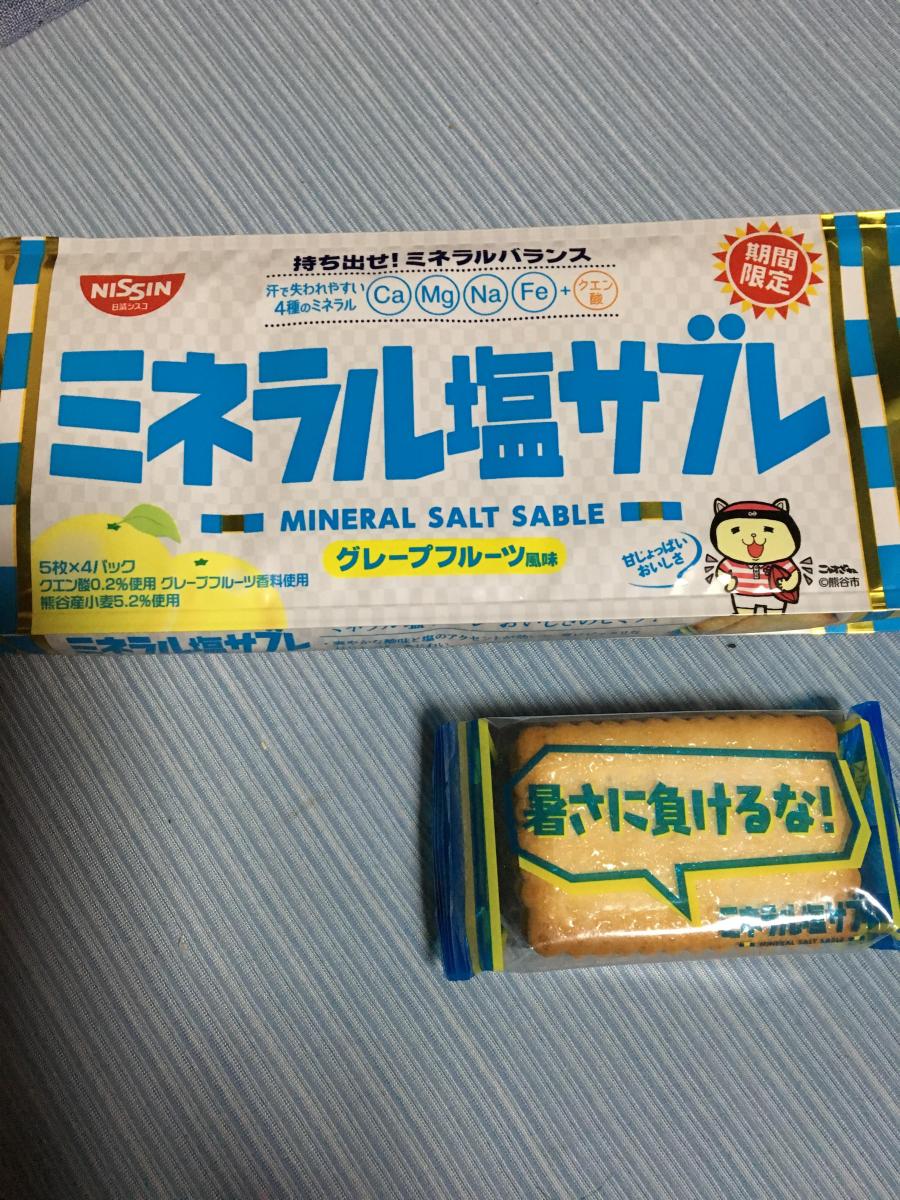 熱中症対策で水分や飴などで塩分補給は良くしますが、サブレでミネラルがとれるのは珍しいですね。グレープフルーツ味はあまり感じなかったのですが甘いサブレに噛むごとに感じるほのかな塩辛さで元気になれそうです。個包装になっていて一袋がちょうど小腹を満たしてくれる量です。割れないようにカバンにしのばせています。