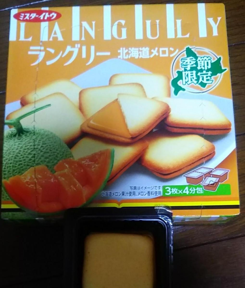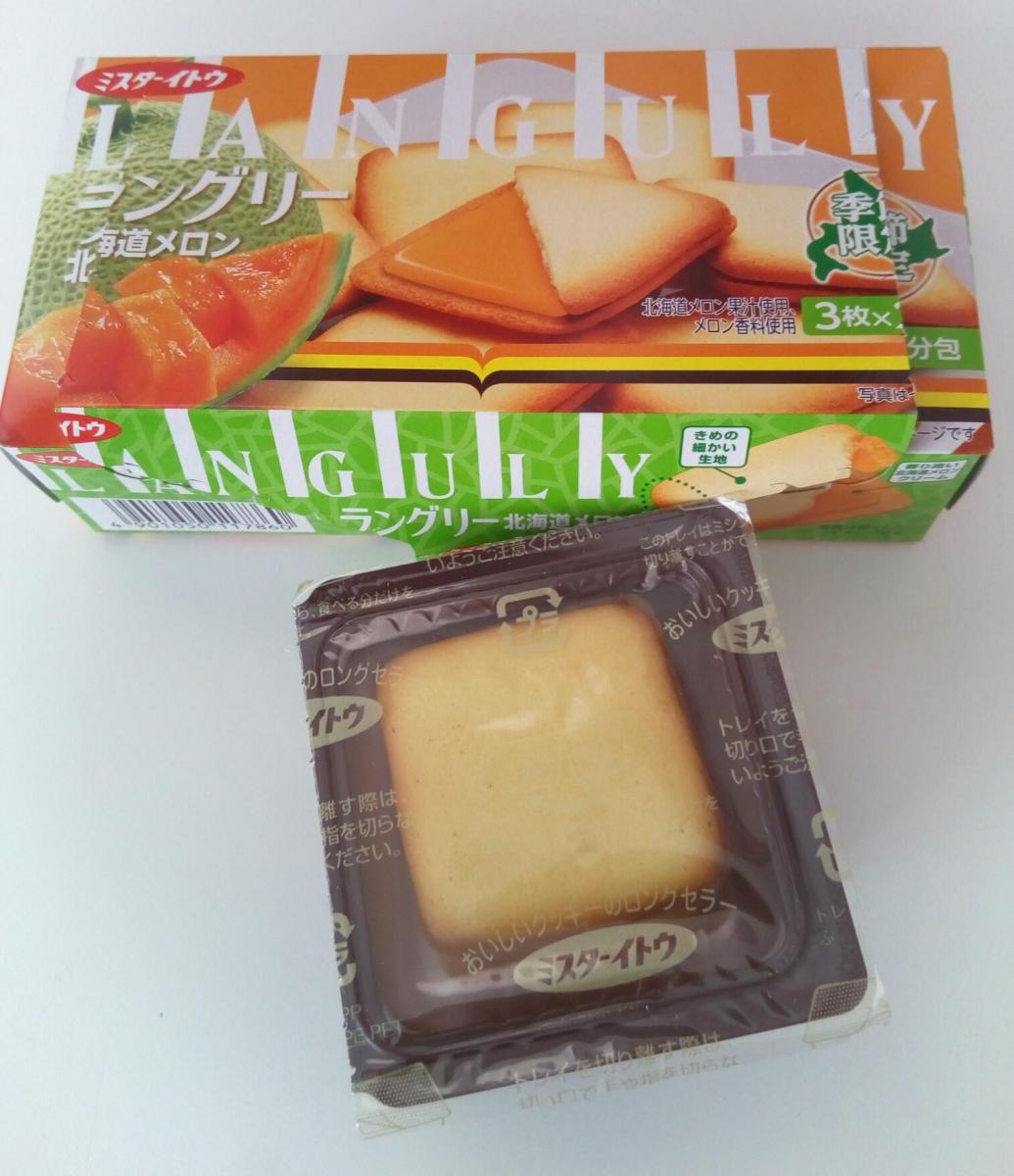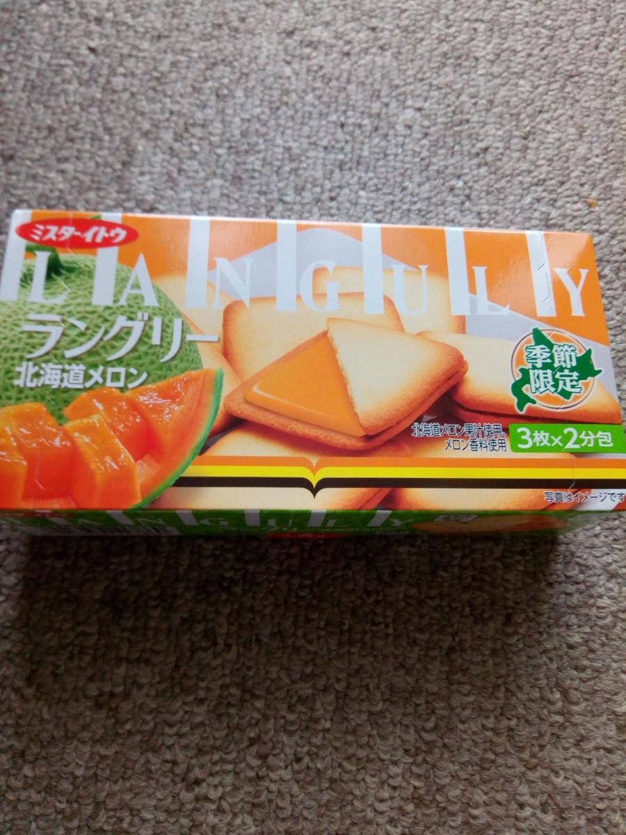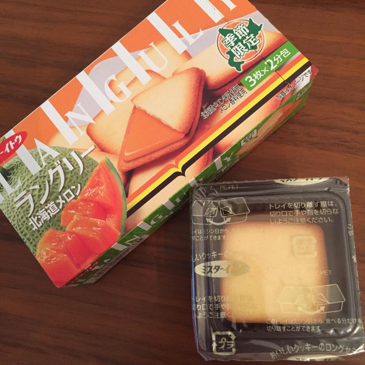 ラングリー好きで時々買うのですが、メロン味は初めて見たので手にとってみました。パッケージを開けるとメロンの良い香りがして、少し厚めのラングドシャクッキーにしっかりした味のメロンクリームがサンドしてあり、食べ応えがありました。