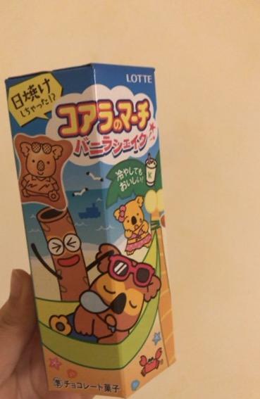 バニラシェイクを再現したホワイトチョコが入ったコアラのマーチです。