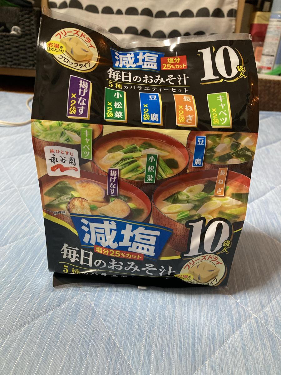 みそ汁を切らしてしまったので、探していたら、減塩の毎日のおみそ汁を見つけました。塩分25%カットということなので、すごくありがたいです。