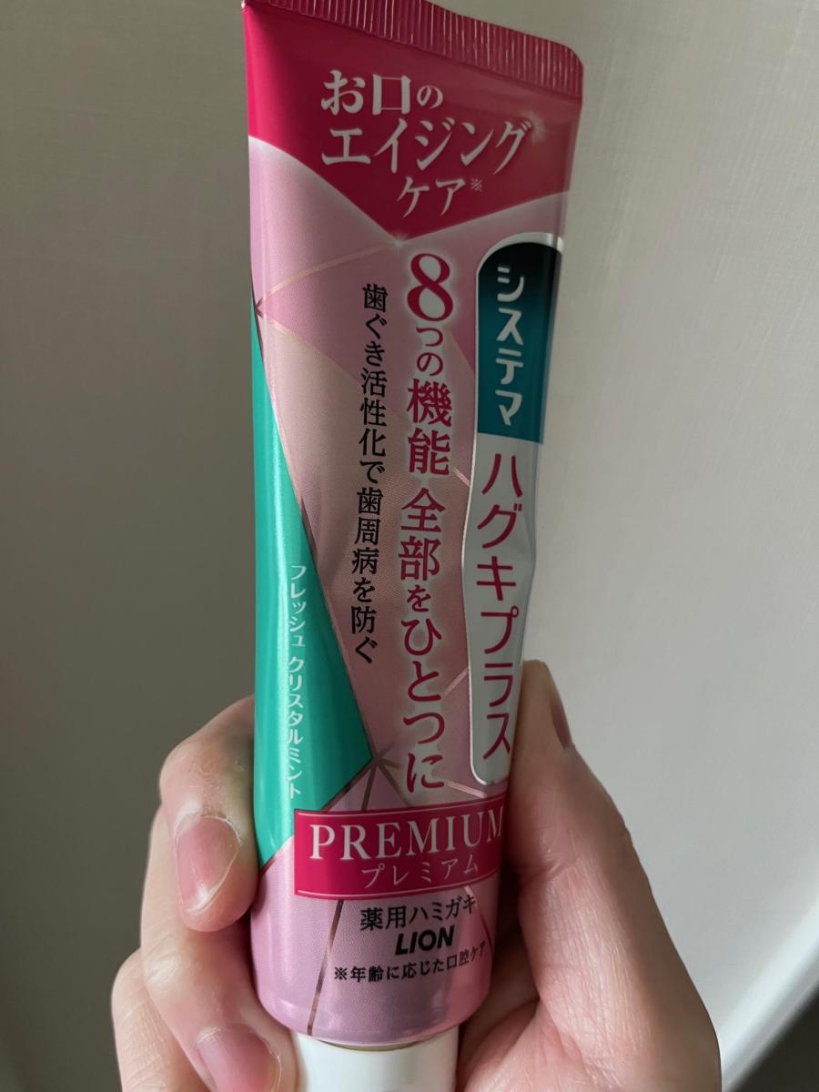 歯周病が気になってきたので最近はプレミアムタイプを使うようにしています。そのなかでもシステマ ハグキプラス プレミアムはやさしい香りのなかで、かつ一番の謳い文句である歯ぐきそのもののシマリやスッキリ感が特に良いように感じています。フレッシュクリスタルミントの香りも磨いたあとにキツイ香りものこらずに優しく程よいさわやかさでお気に入りです。