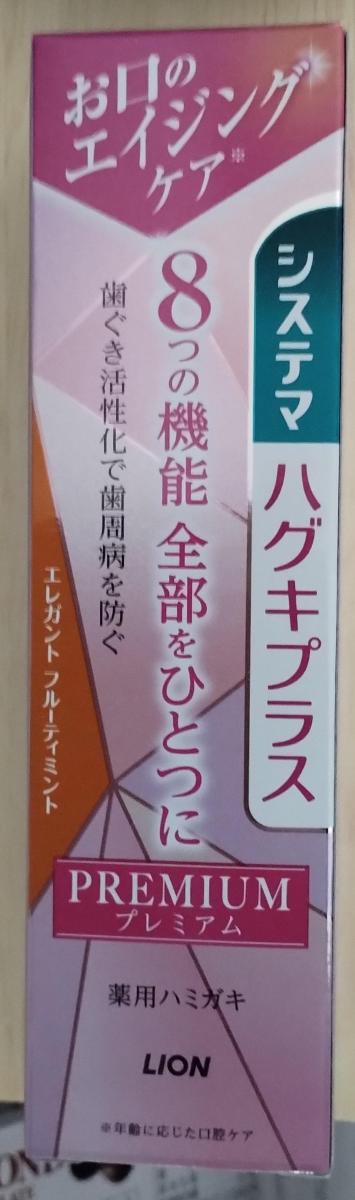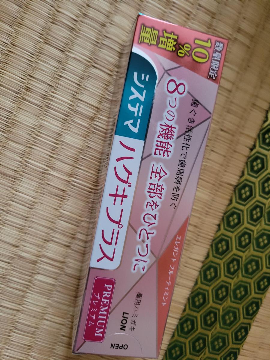 システマのハグキプラスシリーズは、時々使っていました。ここしばらくは、ほかのものを使っていたのですが、8つの機能が備わっているという記載が気になり、買ってみました。